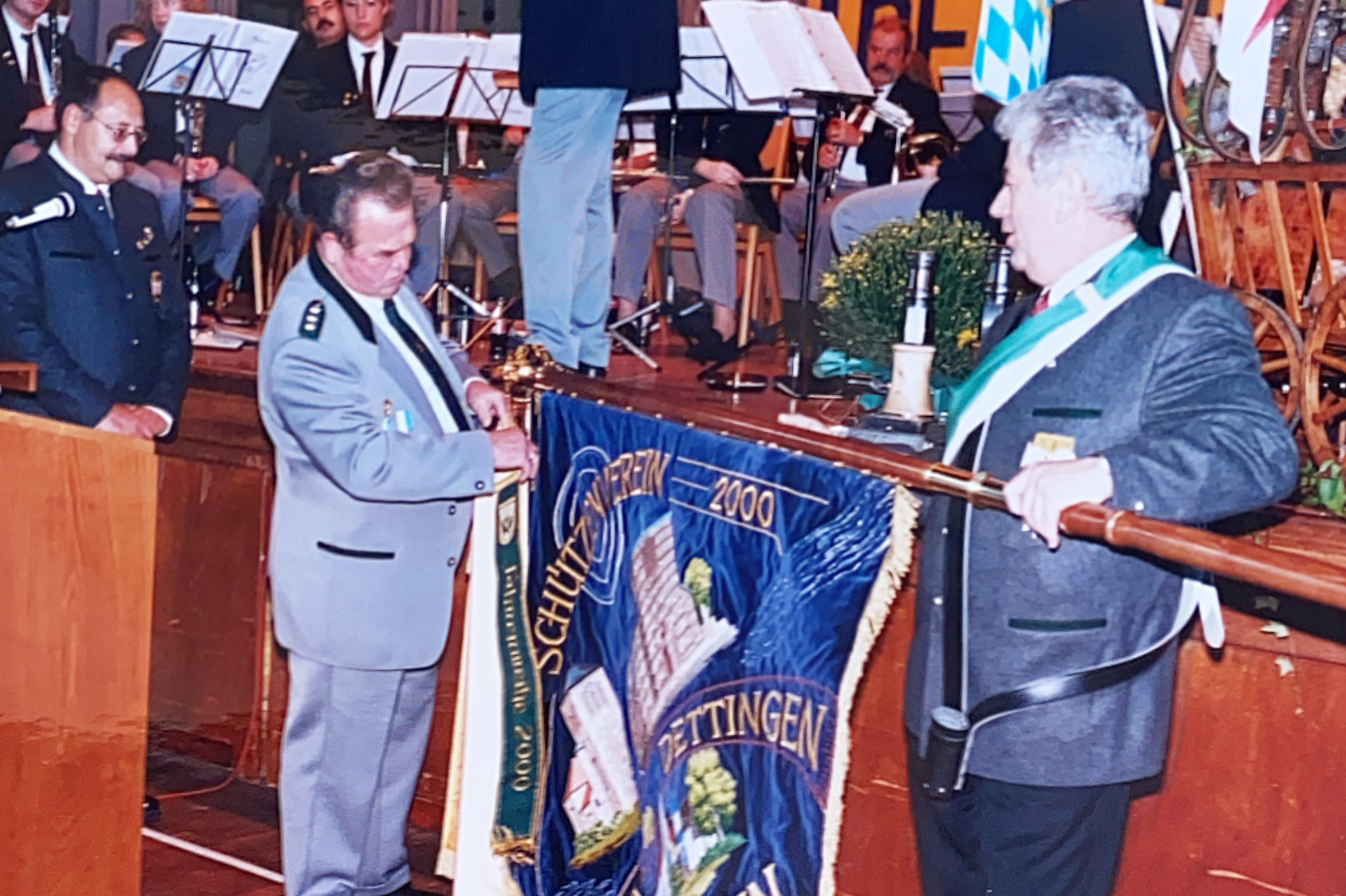 Der Vorsitzende der Großwelzheimer Ortsvereine (AdO) Herbert Leipe, dessen Sohn Kevin seit drei Jahren bei den Schützen dabei ist, bezeichnete die Jugendarbeit der Diana als vorbildlich. Der 1. Gauschützenmeister des Gau Main-Spessart, Reinhold Köppel, erinnerte sich an seine Jugend. Der junge Mann aus Kahl entschied sich für die Diana, denn "die Dettinger Schützen waren ein bisschen besser". Außerdem erhielt er ein Moped, auf dem er mit der Schießtasche auf dem Rücken den Weg zurücklegen konnte. Glückwünsche und Präsente überreichte er von den Schützenbrüdern und -schwestern aus Alzenau, Hösbach, Niedersteinbach, Westerngrund und Kahl. Jürgen Vongries vom Patenverein Tell Kleinostheim bezeichnete die neue Sportanlage als "ein Schmuckkästchen". Er überreichte eine handgeschnitzte Diana-Figur, für die Reiner Lorenz versprach, einen Ehrenplatz auszusuchen. Der stellvertretende Präsident des Arbeitskreises Nordbayerischer Böllerschützen, Hubert Bauer, übermittelte die Glückwünsche des ganzen Präsidiums und hatte als Präsent für eventuell kahle Wände der neuen Räumlichkeiten eine große Uhr mit Schützenmotiv dabei. Seinen Dank für "die gute Zusammenarbeit" drückte außerdem Karl-Heinz Reising von der Sparkasse Aschaffenburg-Alzenau aus. Ökumenische Einweihung